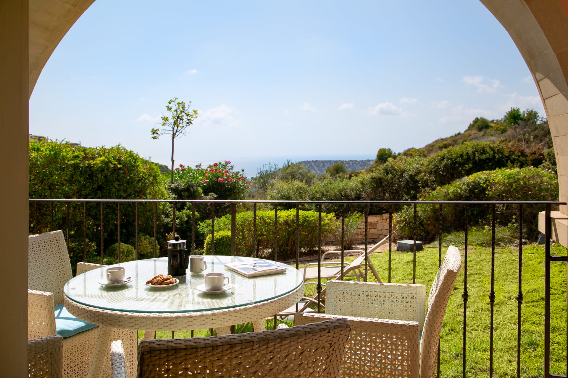 ocated in the highly sought-after Apollo Heights village, this beautifully furnished ground-floor apartment offers peaceful countryside and sea views ideal for couples seeking a tranquil retreat.